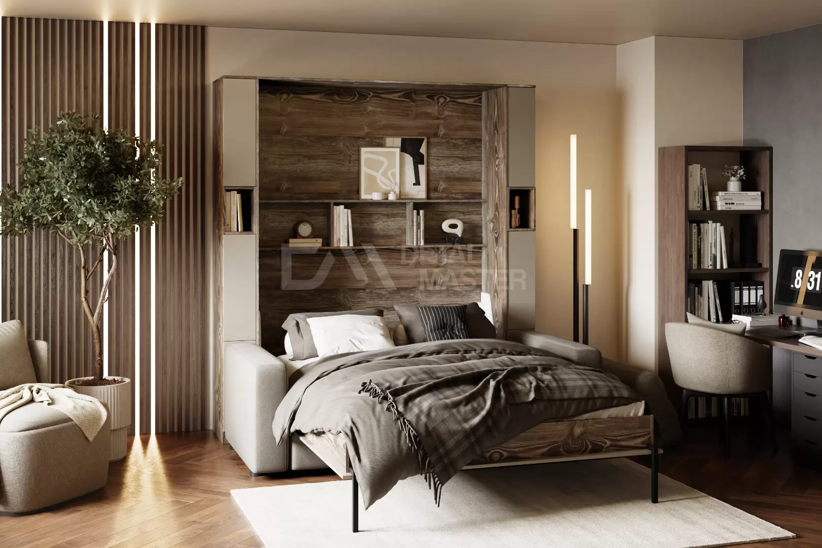 • Корпус и фасад шкаф-кровати, выполненный из ЛДСП;